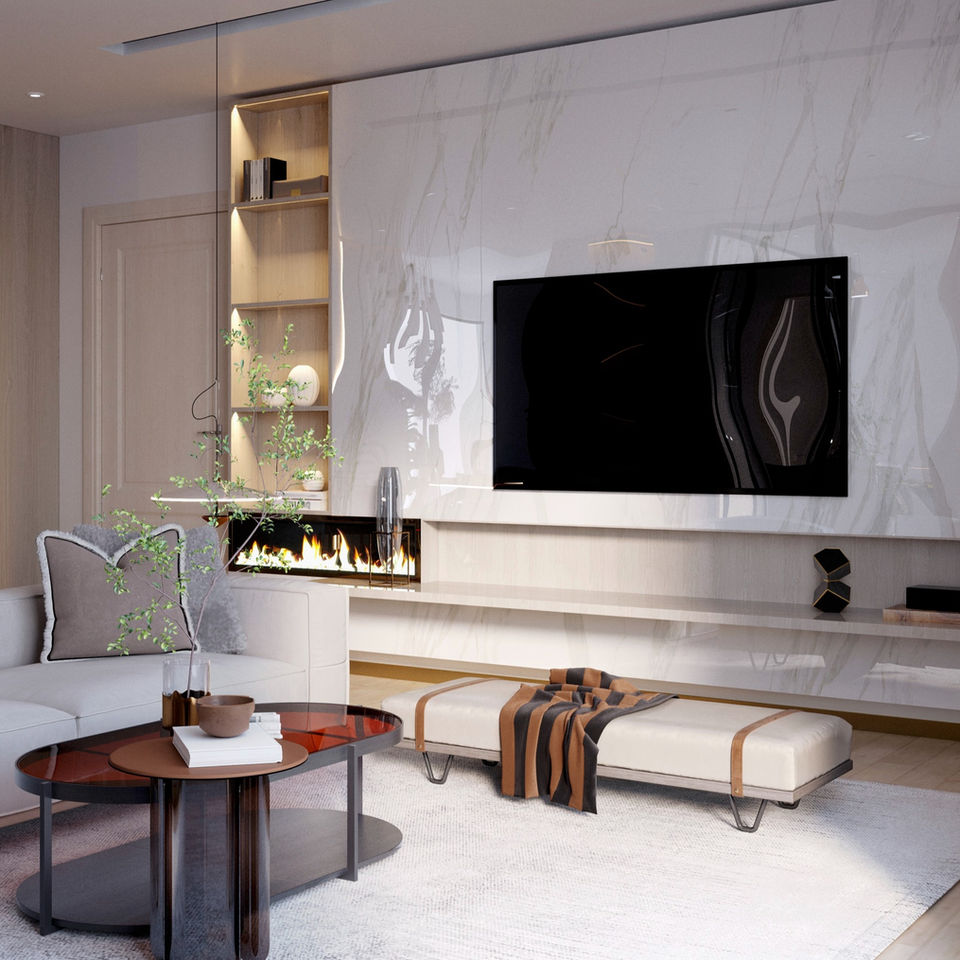 Introducing high-end residential interior design project . The whole idea of transforming the space was making it feel comfortable with using the calm palette and clean lines.